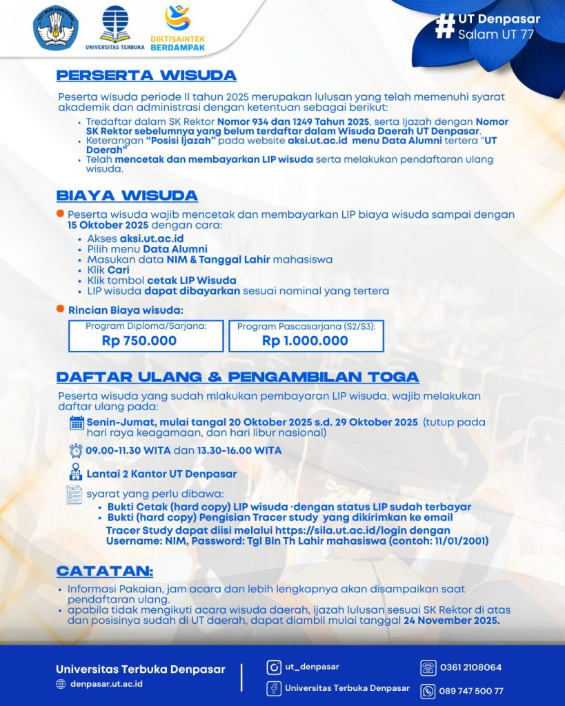 β’β β Bila tidak mengikuti wisuda, ijazah dapat diambil mulai 24 November 2025 di UT Daerah